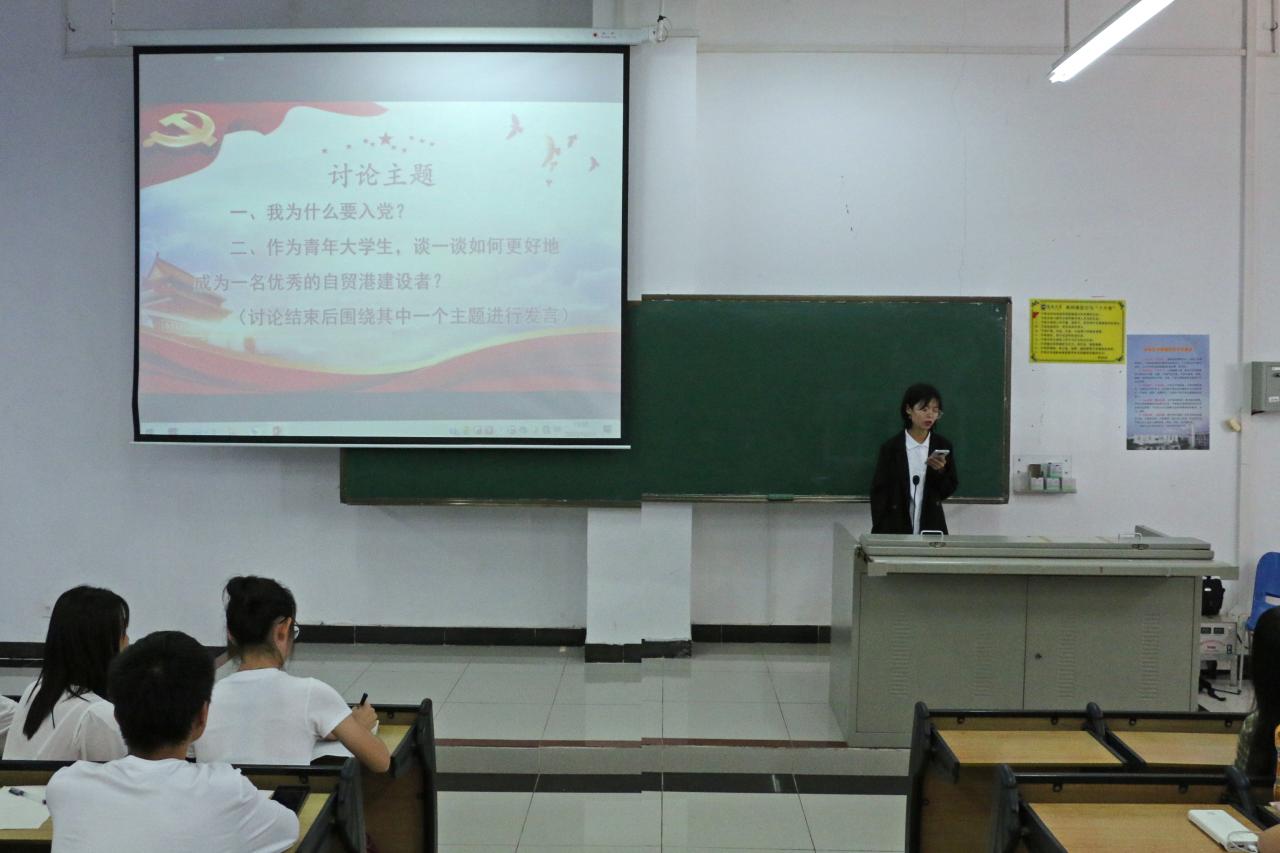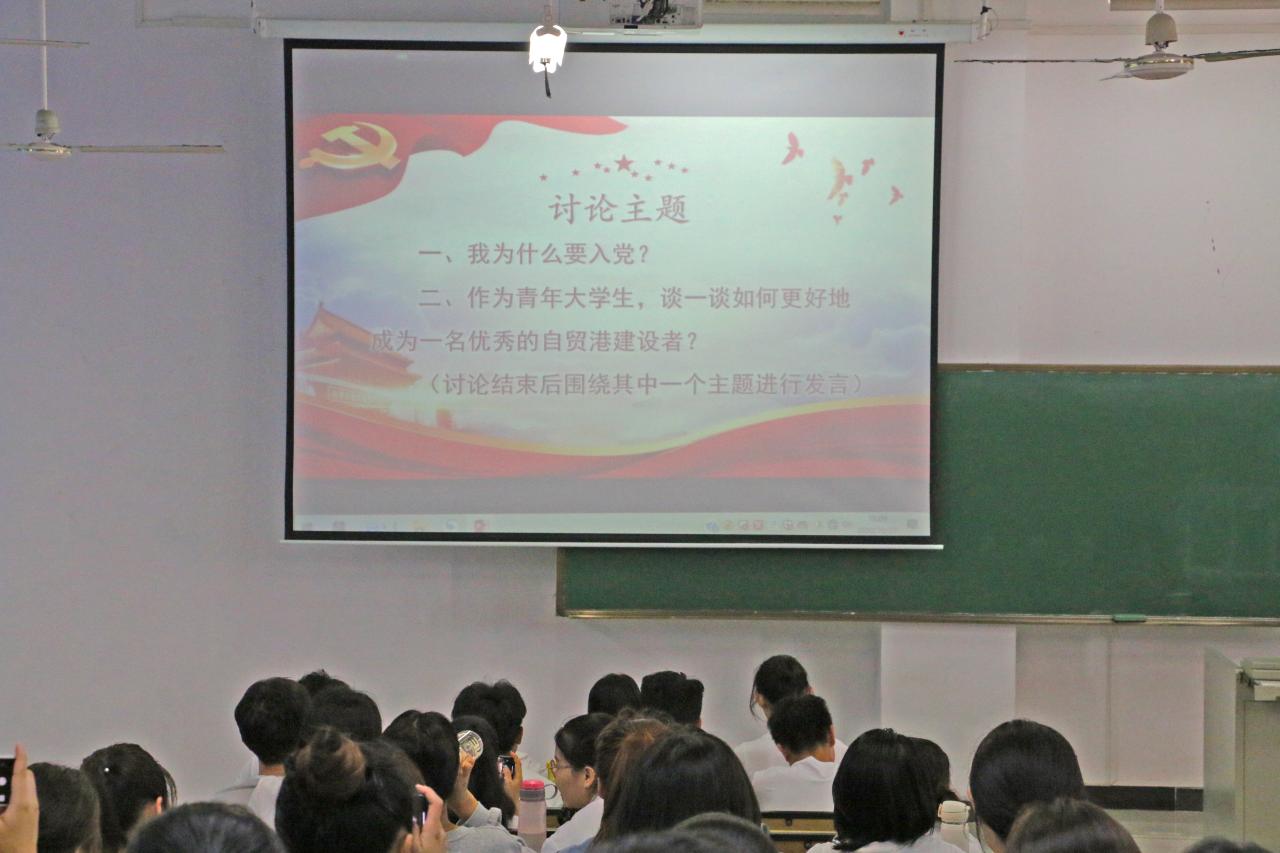 下午3:00,大会正式开始。大会共两个环节,包括讨论和小组代表发言两项。讨论共有两大主题,一是“为什么要入党”;二是“作为青年大学生,谈谈如何成为一名优秀的海南自由贸易港建设者”。