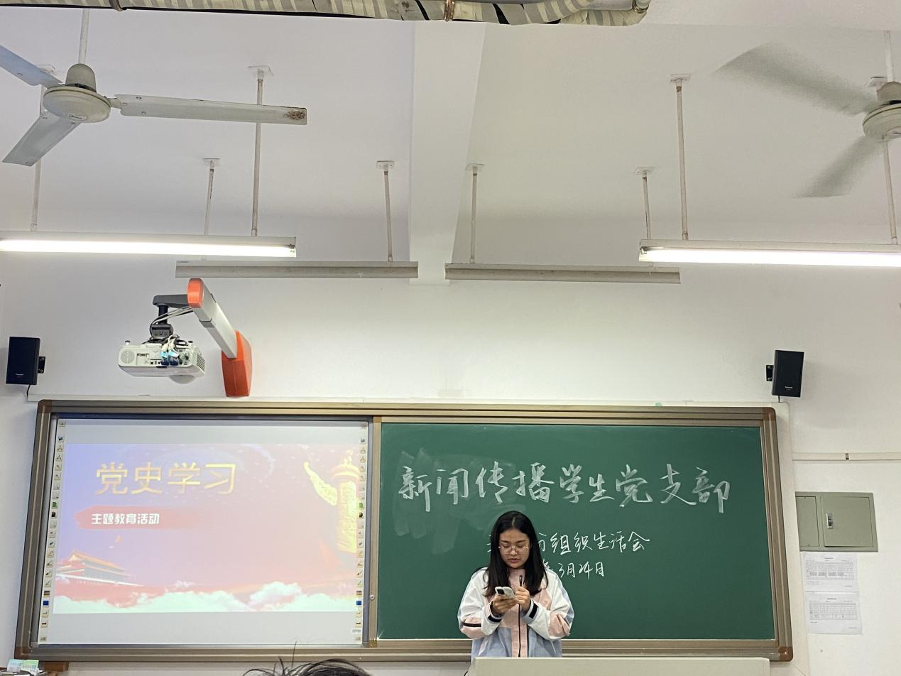 人文传播学院新闻传播学生党支部于2021年3月24日下午4点40分,在教学楼5-119召开了新闻传播学生党支部学习党史动员会。会议由党支部书记李洁主持。