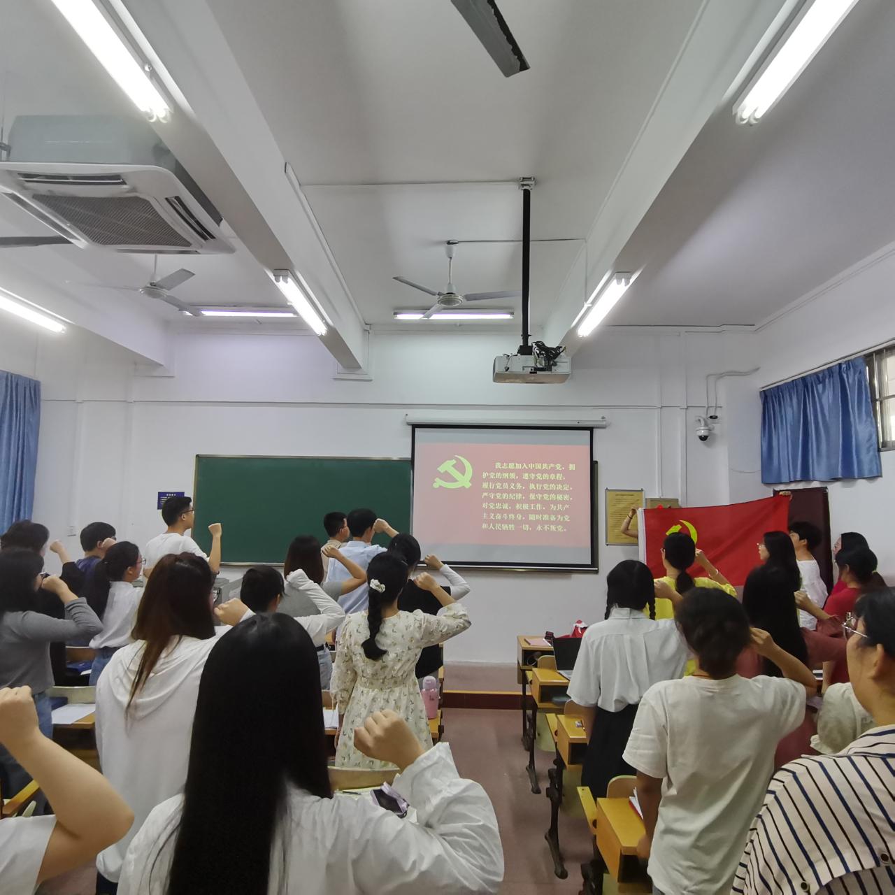 大会第四项,宣誓。由支部书记李润东领誓,全体党员共同宣誓,进一步坚定入党决心与共产主义信念。