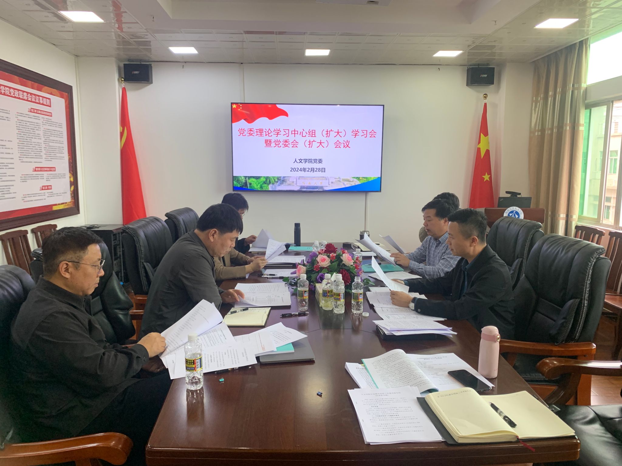 党委在社科楼B615会议室召开党委理论学习中心组(扩大)学习会议,深入学习习近平总书记党建思想的核心内涵、海南省委八届四次全会精神、习近平总书记在纪念毛泽东同志诞辰130周年座谈会上的讲话及在第十个国家宪法日之际作出的重要指示等文件精神。学院党委委员、院领导参加会议,会议由党委书记杨元广主持。