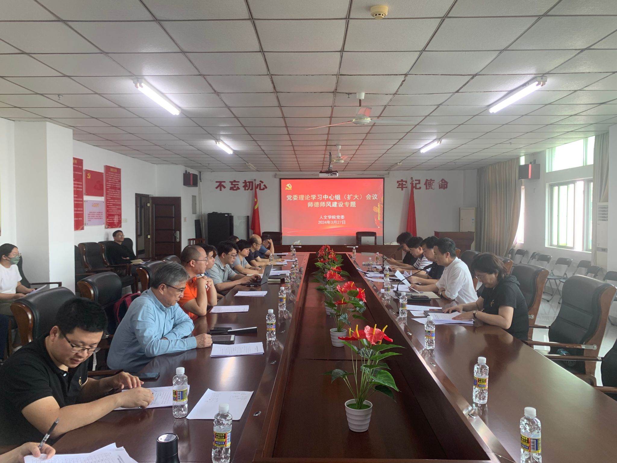 党委书记杨元广在社科楼会议室B719主持召开党委理论学习中心组(扩大)学习会议,专题学习师德师风建设。学院院领导、党委委员、一级学科带头人及二级学科方向负责人、系主任、教研室主任、支部书记和办公室主任等参加会议。