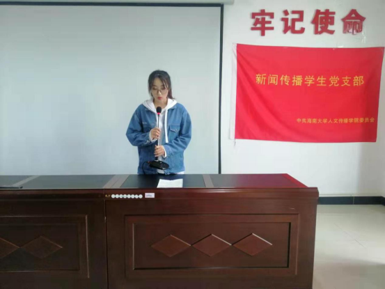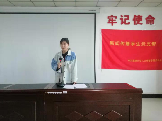 人文传播学院新闻传播学生党支部于12月10日下午3点30分,在社科楼B-719召开了新闻传播学生党支部预备党员接收大会。会议由党支部书记李洁主持。