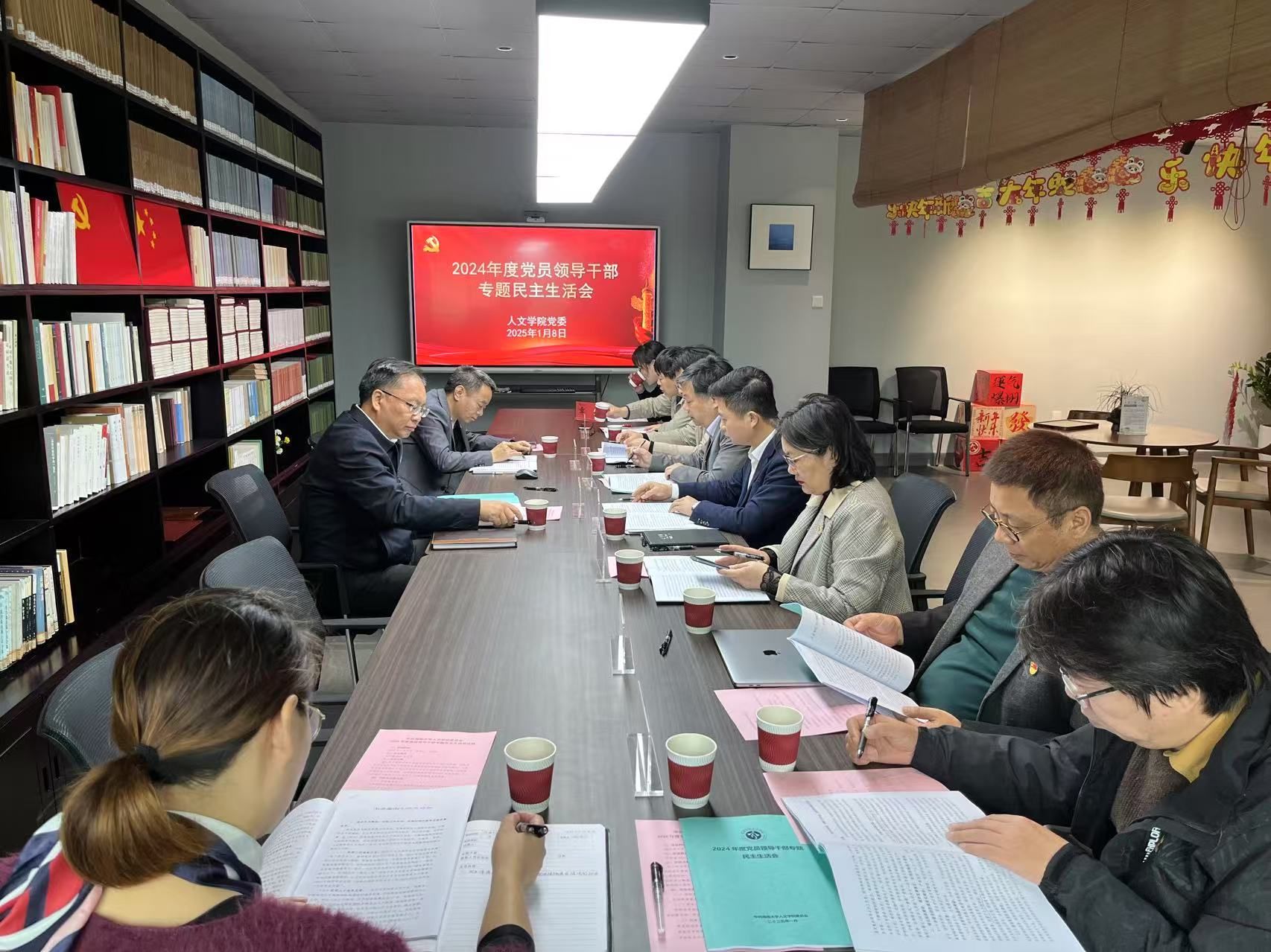 2024年度党员领导干部民主生活会在社科楼B621人文之家召开。校党委常务副书记张继友、党政办公室副主任张平恒到会指导。女同做爱