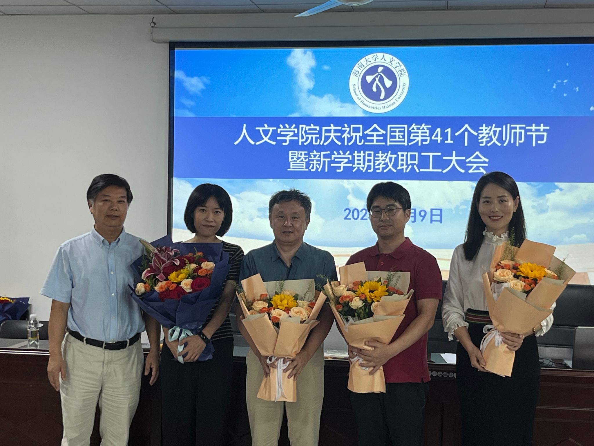 谭新红院长在大会上讲话,他首先代表学院领导班子祝全体教师节日快乐,对大家一年来的辛苦付出和无私奉献表示衷心的感谢。他指出,当前学院上下一心,紧紧围绕海南自贸港建设和学校创建世界一流大学的核心任务,全面落实学校“三大改革”七大任务,真抓实干、砥砺奋斗,坚持以中文博士点建设为抓手,系统推进学院综合改革,在人才培养、学科建设、师资队伍、社会服务、国际合作交流等方面取得了显著的进步,一些核心发展指标实现历史性突破。未来,希望全体教职工始终坚持以一往无前的奋斗姿态、风雨无阻的精神状态,在更高起点上推进学院实现高质量发展。