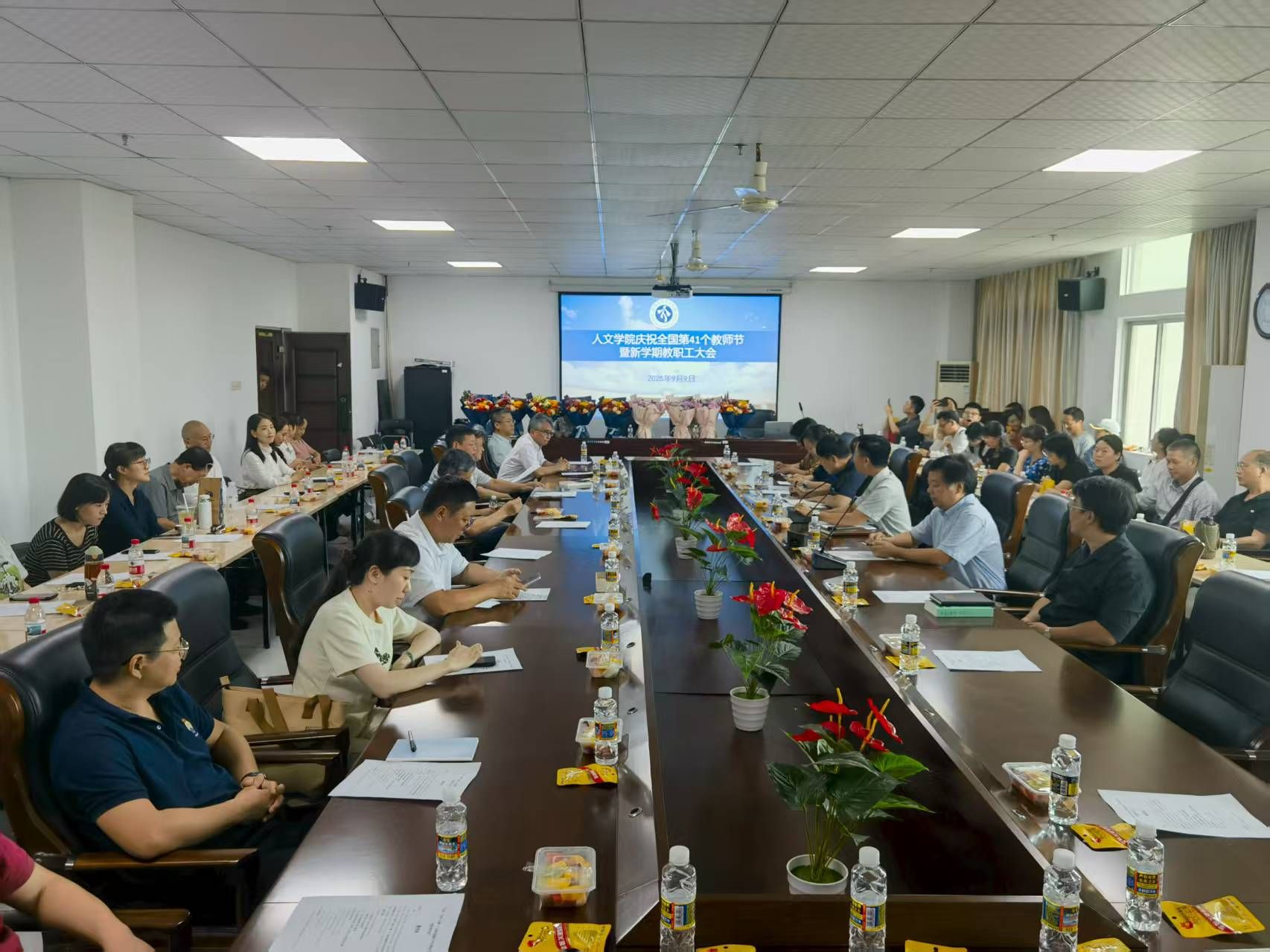 在社科楼B719会议室举行庆祝全国第41个教师节暨新学期教职工大会,学院领导班子、全体教职工参加大会,大会由学院党委书记杨元广主持。