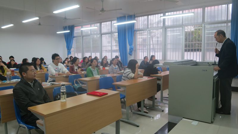 对外汉语系(汉语国际教育专业)冬季小学期正式开班。主讲人龙涛教授将于1月8日与10日上午进行两讲的“‘语符’观的运用研究”主题讲座。刘亮副院长主持了本次开班仪式,并为龙涛教授颁发聘书。 龙涛,知名语言学教授,海南师范大学对外汉语系主任,凭借其多年的“语言学及应用语言学”方向的研究与教学工作经验,在授课中将语言学理论贯穿于生活实际,详尽论述了语言作为一种符号系统的运用。从“语言学理论的运用”,到“语言符号理论的运用”,再到“语言学研究与其他领域的研究”,龙涛教授由浅入深,在我专业学生对语言学知识有一定的掌握程度下,帮助学生构建了一个更清晰的语言学理论框架,更拓宽了学生对于“语言学”这一专业必修课的知识面。 在授课过程中,龙涛教授注重形象举例与师生双向互动,他用生动且有深度的语言,为同学们答疑解惑,课堂氛围轻松有序。 汉语国际教育属“应用语言学”的一个分支,“语言学”尤其是“应用语言学”的研究与汉语国际教育人才的培养密切相关,因而本次主题讲座对提升本专业学生学术水平具有积极的促进作用。