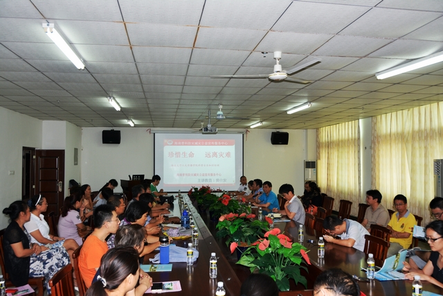 2016年“安全生产月”暨安全生产警示和科普教育活动方案》,强化安全生产发展观念、提升师生安全素质,6月21日下午,学院在719会议室举办了“安全知识培训会”,学院领导班子成员、教职工及部分学生干部近70人参加。会上,邀请了海南普科防灾减灾宣传服务中心教员黄仕发为大家进行了安全实用技能培训。会议由学院党委书记王兆庆主持,学院院长刘复生、副院长石晓岩、张硕果参加了培训会。 随后通过观看有关视频,黄仕发教员重点讲解了“电梯紧急情况下的应急对策”、“防毒面具的戴法”、“火灾、高楼逃生的技巧”、“灭火器的使用方法”、“报警方法”等等应急突发事件的逃生技巧与处置,并与到会的教职工及学生干部进行了热烈互动交流。之后,在空阔现场组织大家进行了灭火器的实战演练。 通过安全知识的培训,进一步增强了广大教职工的安全意识,提高了安全防范能力,收到了广大教职工的称赞。