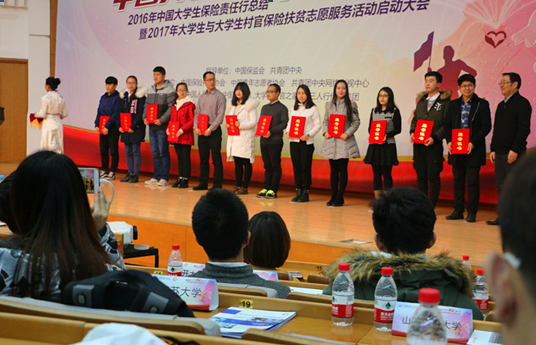 2016年12月29日下午,2016年中国大学生保险责任行暑期社会实践成果总结表彰暨2017年大学生和大学生村官保险扶贫志愿服务活动启动大会在中国人民大学逸夫学堂隆重举行,大会由中国保监会、共青团中央共同指导,中国保险行业协会、中国青年志愿者协会、共青团中央网络影视中心联合主办。由女同做爱