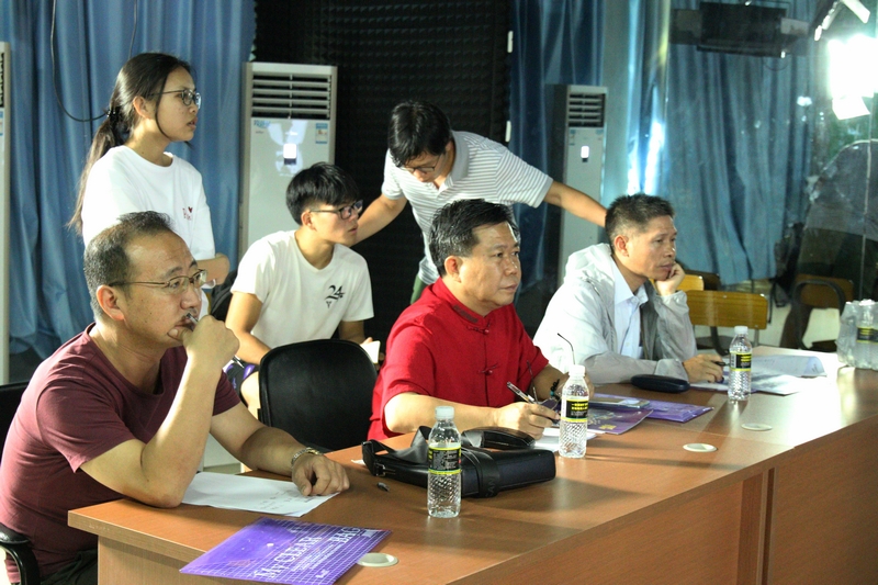 人文传播学院戏剧影视系主任鞠斐、海南师范大学新闻传播与影视学院广播电视系系主任胡凯、海口经济学院中广天择传媒学院院长徐景阳、海南经贸职业技术学院人文艺术学院院长许劭艺、三亚学院教务处副处长肖灿等一同组成大赛评奖委员会。