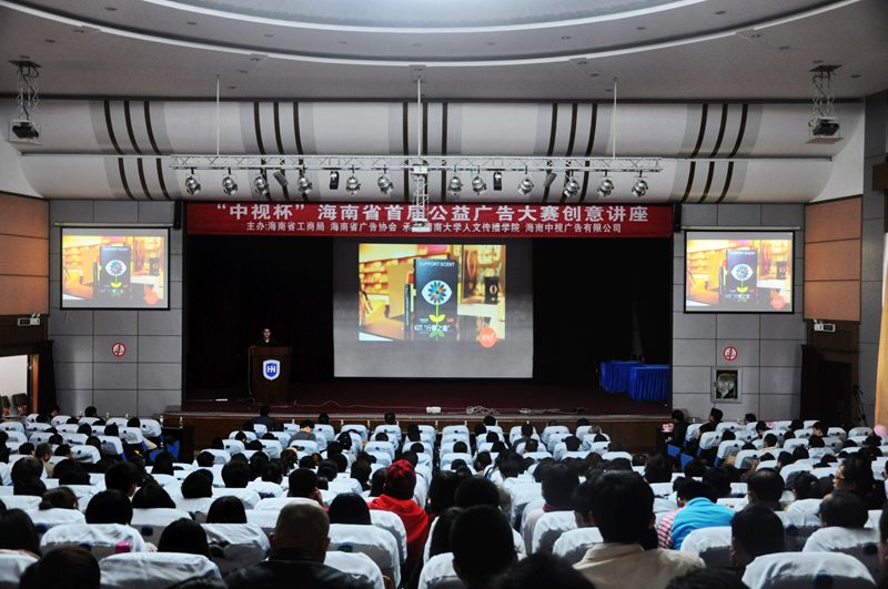 讲座由刘复生副院长主持。刘院长呼吁各界人士关注海南广告教育,加强院企合作,整合优势资源共创双赢。刘院长同时动员与会者积极参与“中视杯”海南省首届公益广告大赛,为海南的公益事业添砖加瓦。