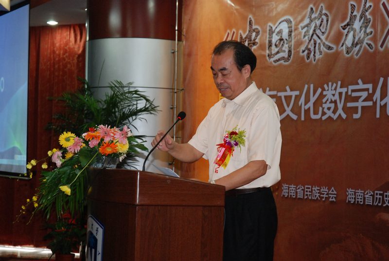 海南省民族学会副会长、《中国黎族》(电子书)编委会副主任王建成代表省民族学会对《中国黎族》(电子书)的编撰、成书过程进行简要汇报,并详细阐述了本书的内容和意义。