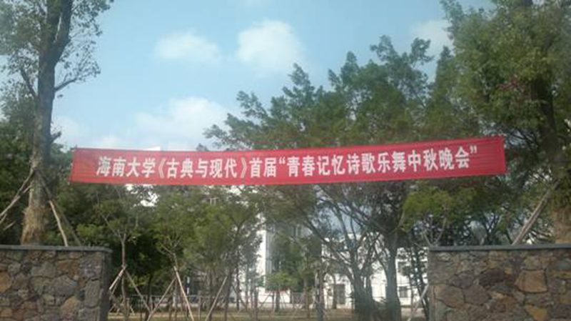 在主持人李晓东老师、郭晶同学低沉、轻柔的开幕词声中,羞掩于云中的明月缓缓露出她那清丽幽婉的面容。艺术学院曹量老师指导的胡启波、刘辰古筝与二胡合奏《南泥湾》适时响起,二胡时而低沉,时而高亢,配上古筝清新雅致的弦音,天地一下子安静下来了,只有那悠悠清曲,徜徉在空气中。人文传播学院高智老师的儿子高远博小朋友带来诗朗诵《中秋吟月》,尽管童声稚嫩,意境却远,几首唐诗及余光中先生的《月光》均得其味。月光朦胧、树影婆娑中,旅游学院黄葶执伞轻移莲步,款款而来,独舞《月梦望断》隐含易安居士之风,“罗衣翠袖轻如雪,顾盼迷离惹人怜”,一阵清风恰起,吹起罗裙秀发,岂不是月中仙子下凡么?掌声方歇,艺术学院徐莹老师高歌《小河淌水》,引观众忘情于青山绿水,在月下遥闻阿哥阿妹深情的呼唤。社科研究中心贾冬阳老师寓有草原气息的现代诗宁静辽阔,援引的《猎户星座》献给当夜过生日的女生,大家都感到了他的朴实、可爱。随后,刘辰的古筝《幻想曲》怪异迷离,抬头望见夜空中飘起的孔明灯,耳畔筝音如细雨敲击芭叶,思维便似那溅起的水珠,无序地跳跃着。青天万里,明月下美人抚曲,那贝壳般的指甲划出优美的光晕,优雅的丰姿定格在刹那,于记忆中成永恒。 中秋之夜,月饼与酒自不可少。晚会的月饼和酒都来自海大教师与社会上热心朋友的捐赠,同时观众自带与人分享的食品和卡片,同有缘人结友。欢声笑语,觥筹交错中,大家即兴表演,有吟诗的(人文传播学院副院长刘亮等)、献曲的(海南日报主任记者蔡葩等),一片欢娱气氛。下半场以艺术学院张俊二胡曲《赛马》展开,闻之如万马奔腾,纵横驰骋。外国语学院12级研究生姚铁斌太极拳表演在古曲《高山流水》中意静神闲,大方舒展,清风朗月中演绎中华精粹。待众人品罢美酒佳馔,在主持人引领大家齐声念颂十遍“与谁同坐?清风明月我”之后回复平和,十分钟“对月静思”开始了。人们仰望冰轮,浑然忘我,神游于太虚,享心灵之静谧。 月光皎洁,松涛阵阵,艺术学院张俊、董理二胡古筝重奏《渔舟唱晚》清音曼妙,晚会以人文传播学院10级20位女生朗诵《春江花月夜》而终。中秋月下的青春记忆广场清洁宁静,诗意良宵,如梦如幻! (文:姚铁斌;图:张兰娉)