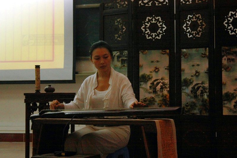 二教108教室内,檀香幽幽,琴音渺渺,东方经典系列讲座第九讲《闻道古琴》盛装开讲。本场讲座盛情邀请到女同做爱