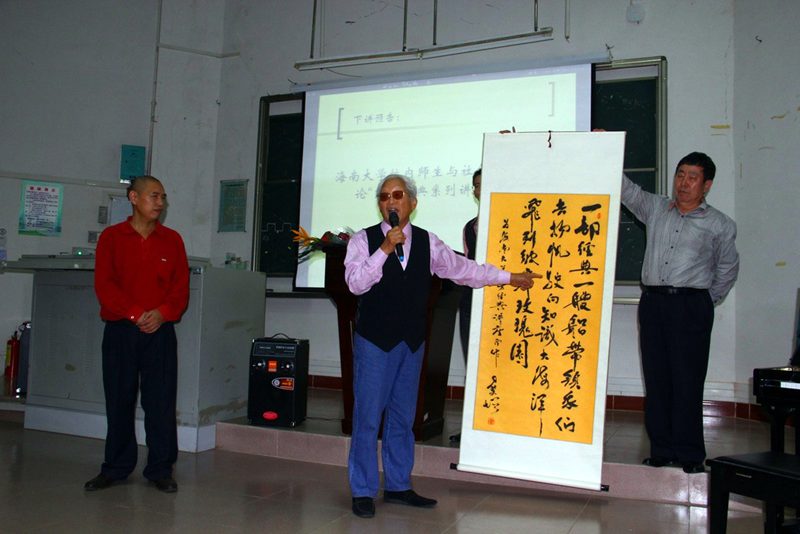 校长尹双增教授向“东方经典系列讲座”赠送书法作品和专著《点滴》,尹教授表达了对此次活动的祝愿及对海大学子的殷殷期盼。 12月16日晚八点,同一时间,同一地点,东方经典系列讲座将与听众再次相约。作为东方经典系列讲座的最后一次收官之讲,此次讲座将邀请海大师生及社会各界朋友纵谈“东方经典系列讲座”之得失,敬请期待!(文:姚铁斌;图:赵梓超、袁丽杰)
