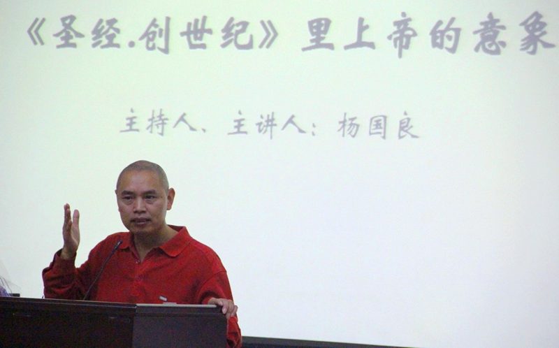 2号教学楼108室,晚上八点整,杨国良教授手持金黄丝绸包裹的《圣经》,缓步走入教室,向在场听众深鞠一躬。随后,由艺术学院曹量老师指导的付美美等四位同学演奏的三重奏“莫扎特钢琴作品478号”悠然响起,四位演奏者身穿黑白长裙,风度优雅,灵动美妙的音符从钢琴、大中小提琴中飘洒出来,交织、融合在一起。 “儿子10岁那年,一天晚上,他做了一个梦。在杨家老宅,走入地下室,里面非常开阔,室中央摆着一个箱子,他很好奇,走过去打开箱子,发现里面装着木炭,将木炭移走,看到了丝绸,翻开丝绸,里面又有一个木箱,打开后又见木炭,如是者三次。最后,木箱里赫然放着一本《圣经》。翻开,发现里面是竖版的汉字《圣经》,可读着读着,字就消失了。他非常害怕,赶快将书合上,认真将一切恢复原位,怀着忐忑不安的心情走出了老宅。第二天早晨,他将梦告诉了我。我立刻就把这个梦记录下来,直到今天,梦的内容依然清晰如昨。我想,这个梦会刻在我心里最深的地方,一生难忘。”东方经典系列讲座主持人,本场主讲杨国良教授生动、蕴含神秘色彩的开场将听者领入到一个饱含生命感动、静穆的殿堂。 杨教授讲到,《圣经》最早的汉译本可能出现在盛唐,此论可考据于唐代“景教碑”。之后,《圣经》与中国历代皇帝、大臣及平民的关系愈加密切。一个伟大事实就是:《圣经》是中国现在文学史上伟大作家们的“奶娘”!从“日读Bible”的胡适、喜获《圣经》白话文全译本并立刻拿与弟弟分享的鲁迅,到读着《圣经》长大的冰心、父亲是乡村教士的林语堂、主动受洗的老舍、伟大剧作家曹禺……,都受到《圣经》极大的滋养。现在备受人们尊敬的杨绛先生,100岁接受《新民晚报.读书笔会》采访时说:“……我现在已经封笔,剩下的日子,我要清洗身上的污秽,干干净净地去见我的上帝。”杨绛先生心中有一个属于她的纯净、美丽的上帝意象。对于有着六十六卷本的《圣经》,杨教授仅将此次讲座的题目限定在其开篇“创世纪”中,主要讲述推出人类超级精神读本《圣经》的犹太民族,他们心目中的上帝意象。 影响人类进程、世界上每年印刷数量最多、多个国家的每个法庭、医院和部队都有,美国历届总统竞选、宣誓时不可或缺的《圣经》如何开场?第一个意象是“气势恢宏的上帝”。“太初,上帝创造天地。地是空虚混沌,渊灭黑暗。上帝的灵运行在水面上……”好一幅壮丽而震撼的创世画面!开篇一下就将人们带回太初悠长的岁月,“思接千载”又何足道也?人类的思域跨越亘古,延展至宇宙无限的空间,何其深邃、辽远。我们要感谢犹太民族奉献这样旷绝千古的巨著。读者每一次捧读,都是对心灵的清洗,对灵魂的敲打,对内心围墙的拆除,人生就不会变得可怜、狭隘,而“仰望星空”的康德、“涵养浩然之气”的孟子、上帝最先创造的“光”,都让我们反思“自身是否有天地之大气、茫茫之宇宙是否在心中运行”? 《圣经.创世纪》中上帝的第二个意象是“主动关爱人类的上帝”。有人说《圣经》是“上帝写给人类的情书”,而在《圣经》的开篇中,可以通过上帝两次造人的过程中感受到其对人类的关爱。一是上帝按照他的形象创造男人、女人,并赋予其管理全世界人类的职责,使得人类具有永恒上帝的品质。二是在河流清澈、万物繁茂的伊甸园,上帝用泥土造了亚当,将神灵的气息吹入他的鼻孔,赋予了人类与上帝沟通的媒介;看到亚当感到孤独时,上帝又为他创造了伴侣夏娃。 上帝的第三、第四个意象分别是“严厉、审判的上帝”和“忧伤、愤怒的上帝”。上帝审判偷吃禁果的亚当和夏娃,并惩罚他们分别忍受无尽的劳作及生育之苦;上帝审判该隐杀弟时给予其无限放逐的惩罚。由于人类“自私、推诿、互相残杀”等一切恶毒、卑劣的行为让上帝如此忧伤、因而决定用一场大洪水来毁灭人类。随后发生人类想要造通天的巴别塔时,上帝看到人类的自傲,因而让人类的语言变得混乱。杨教授用生动的语言娓娓道来,结合着人类日常的生活及生动的例子,上帝的这两个意象将深深印在人们的头脑中。
