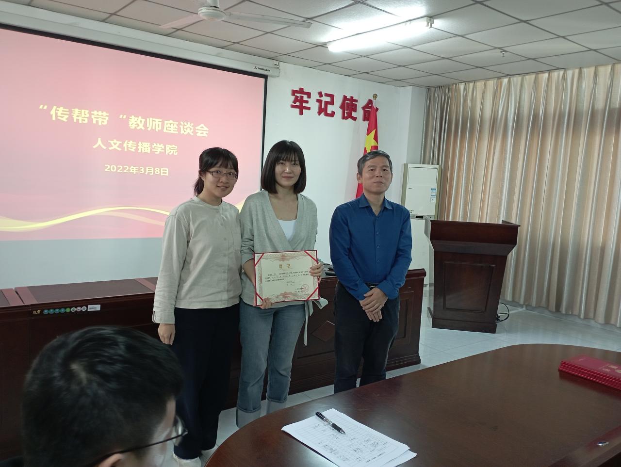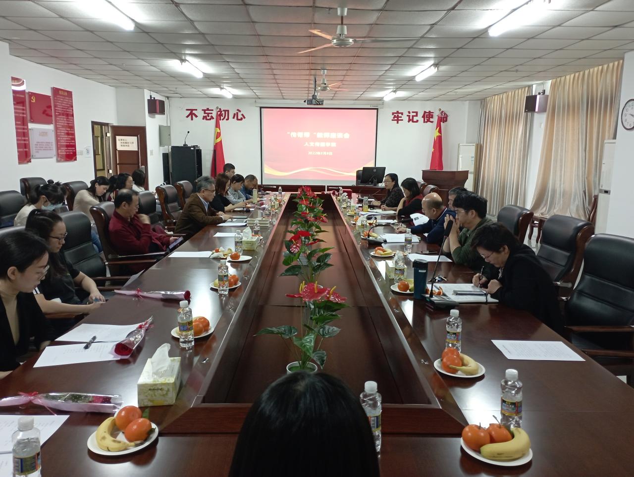 2022年3月8日,人文传播学院“传帮带”教师座谈会在社科楼719会议室举行,学院领导班子、系主任、教授代表、教学科研骨干代表、青年教师代表等参加,会议由党委书记邱华祥主持。