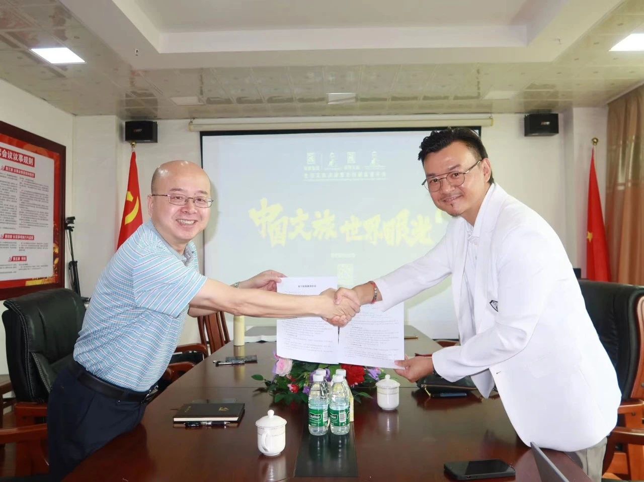 ,商讨进一步开展校企合作事宜。学院党委书记邱华祥、副院长张硕果、李彩霞和中文系主任章颜、戏剧影视系主任文丽敏、传播学系主任朱杰参加会议。
