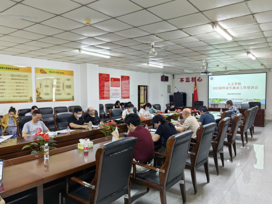 在社科楼B719会议室连续召开2023届毕业生就业工作推进会暨培训会。学院领导班子、学位点负责人、专业责任教授,汉语言文学、汉语国际教育、戏剧影视文学、传播学、广告学本科专业系主任、毕业论文指导老师,中国语言文学、新闻与传播、哲学专业研究生导师等参加了会议,做到全员覆盖。