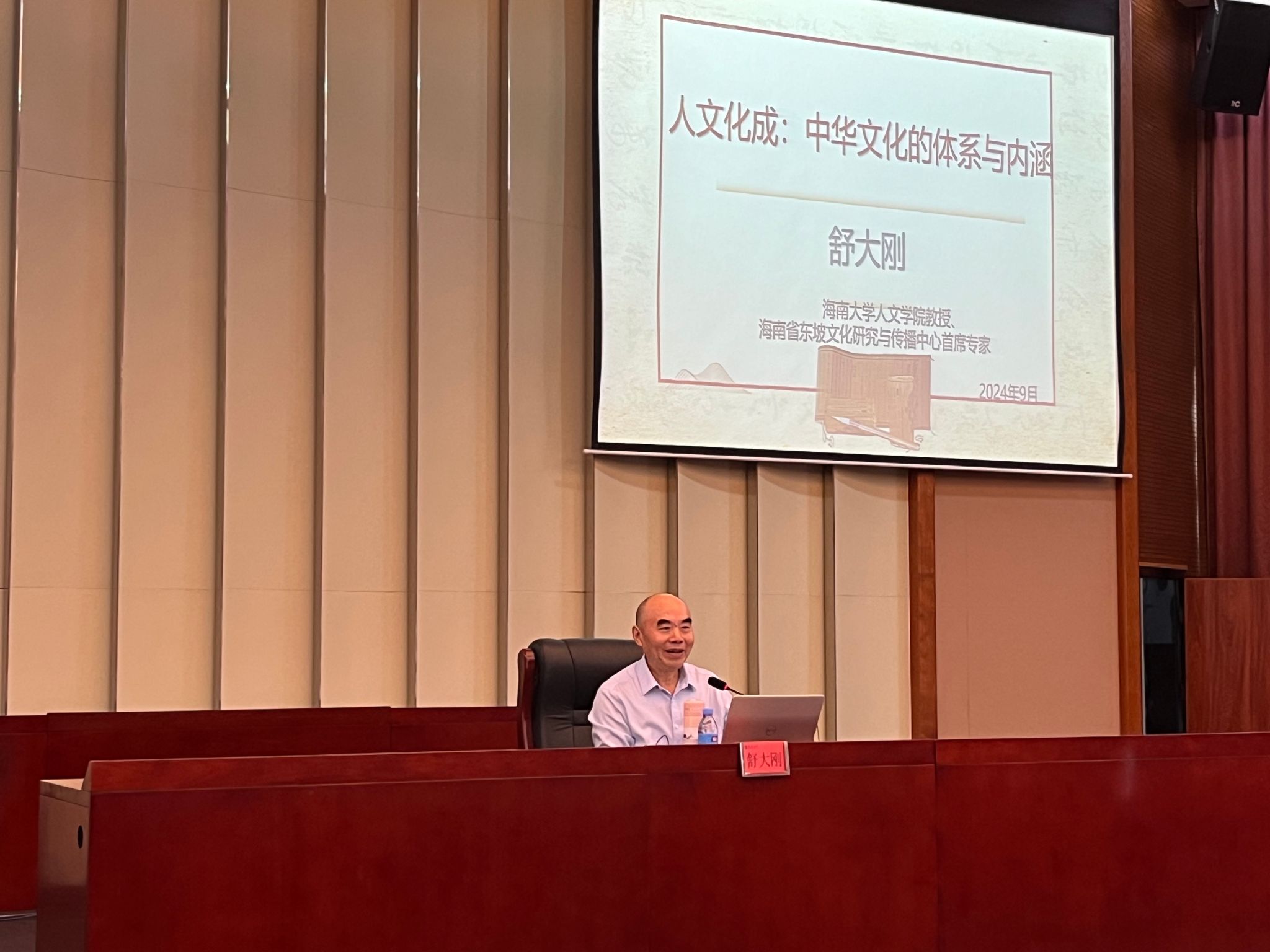 教授、海南省东坡文化研究与传播中心首席专家、国际儒学联合会副会长舒大刚教授以“人文化成:中华文化的体系与内涵”为题讲授“开学第一课”,为2024级新生进行学术启蒙。