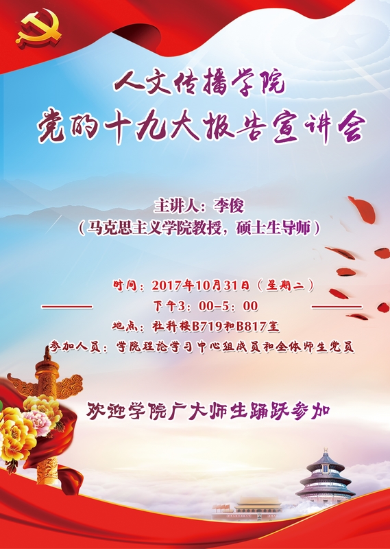 人文传播学院关于举行党的十九大报告宣讲会的通知