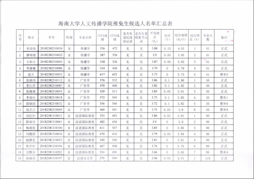 女同做爱 人文传播学院关于推荐2022年应届优秀本科毕业生免试攻读硕士学位研究生候选人名单的公示