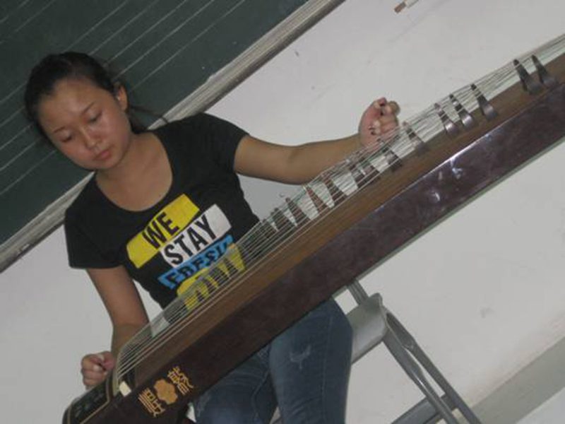 上课铃声响过之后,曹量老师介绍了来自中国的传统乐器——二胡,以及作曲家刘文金运用河南民间曲调创作的二胡曲《豫北叙事曲》。同时,艺术学院二胡专业的同学李明烨和钢琴专业的车文文已经准备就绪,他们为我们带来的是一首《豫北叙事曲》。看着眼前同学全神贯注地表演,悠扬的音乐把我们的思绪带到了河南乡村空旷的田野上,我们像是在倾听一位朴实的农民为我们诉说他的故事,时而悲伤,时而欢乐。