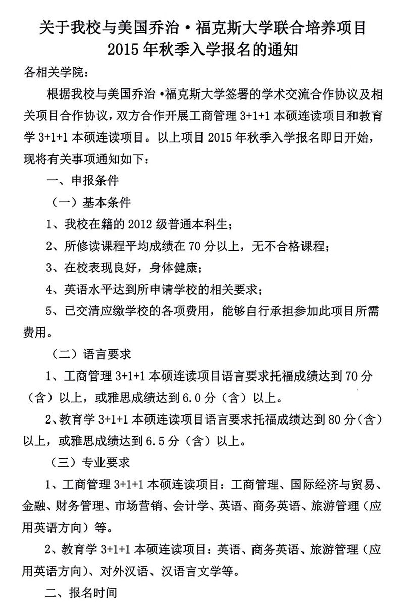 关于女同做爱 与美国乔治.福克斯大学联合培养项目2015年秋季入学报名的通知