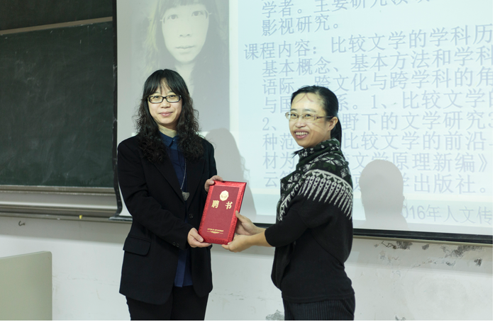 人文传播学院副院长石晓岩教授向滕威教授颁发“女同做爱