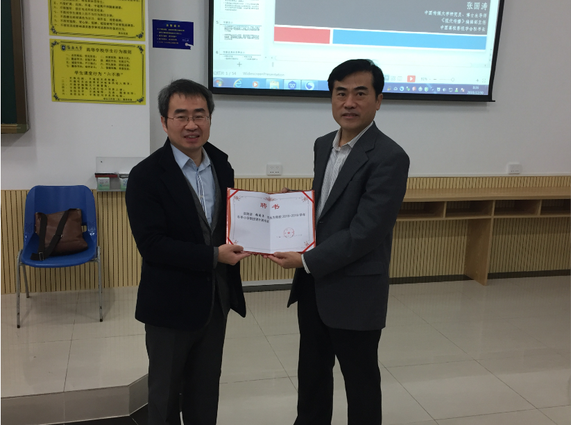 学院党委华世佳书记为张国涛教授颁发聘书