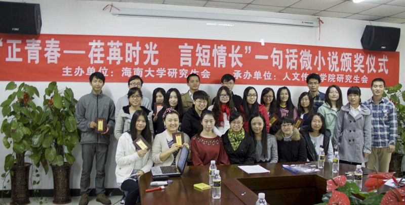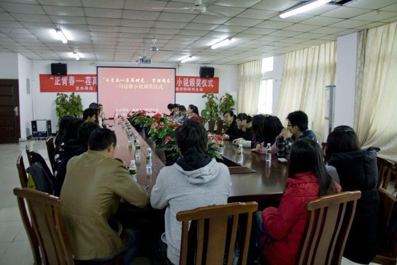 研究生会主办、人文传播学院研究生会承办的“正青春—荏苒时光,言短情长”一句话微小说征文大赛颁奖仪式在社科楼B719会议室举行。出席此次颁奖仪式的嘉宾有人文传播学院石晓岩副院长、校研会主席于赫、人文传播学院荣誉主席王天巍。与会嘉宾还有各学院的研会代表以及征文大赛的25位获奖者。颁奖仪式由院研会办主任杨烁主持。 会上,石副院长首先代表人文传播学院全体导师和在校研究生感谢全校研究生对本次活动的积极参与,并表示很高兴为各院研究生搭建一个展示研究生文学才华的平台,以拉近各学院文学爱好者们的距离。石副院长对本次一句话微小说作品征集活动的立意与创新之处、给予充分的肯定,指出:此次活动 “以‘青春’、‘时光’、‘情感’为主题十分到位,旨在将青葱岁月中给予自己正能量的人、遇到的那些暖人心的事诉诸笔端。随后,人文传播学院研究生会主席孙凌昱做了总结发言,她对本次活动的征集和评审情况做了全面细致的汇报,对校研究生工作部的正确指导、学院的全面支持以及校研究生会的鼎力帮助致以诚挚的谢意。最后,于赫与王天巍宣读了此次获奖名单,并为获奖选手颁发荣誉证书。 据悉,此次 “正青春—荏苒时光,言短情长”一句话微小说活动收到了来自14个学院在校研究生的微小说作品,共计172则,经过人文传播学院研究生会初审、各学院研究生会复审以及人文传播学院专业老师的终审,以匿名方式评选出了25则获奖作品,其中最动人作品奖3名,最创新作品奖3名,最精炼作品奖3名,优秀作品奖16名。 此次微小说作品征集活动彰显了同学们的文学热情,畅快抒写了青春的所思所想,弘扬了文学魅力。本次颁奖仪式在嘉宾与获奖选手合影留念的轻松温馨的氛围下圆满落幕。(文:张媛,彭露 图:周含 审议:杨佩佩)