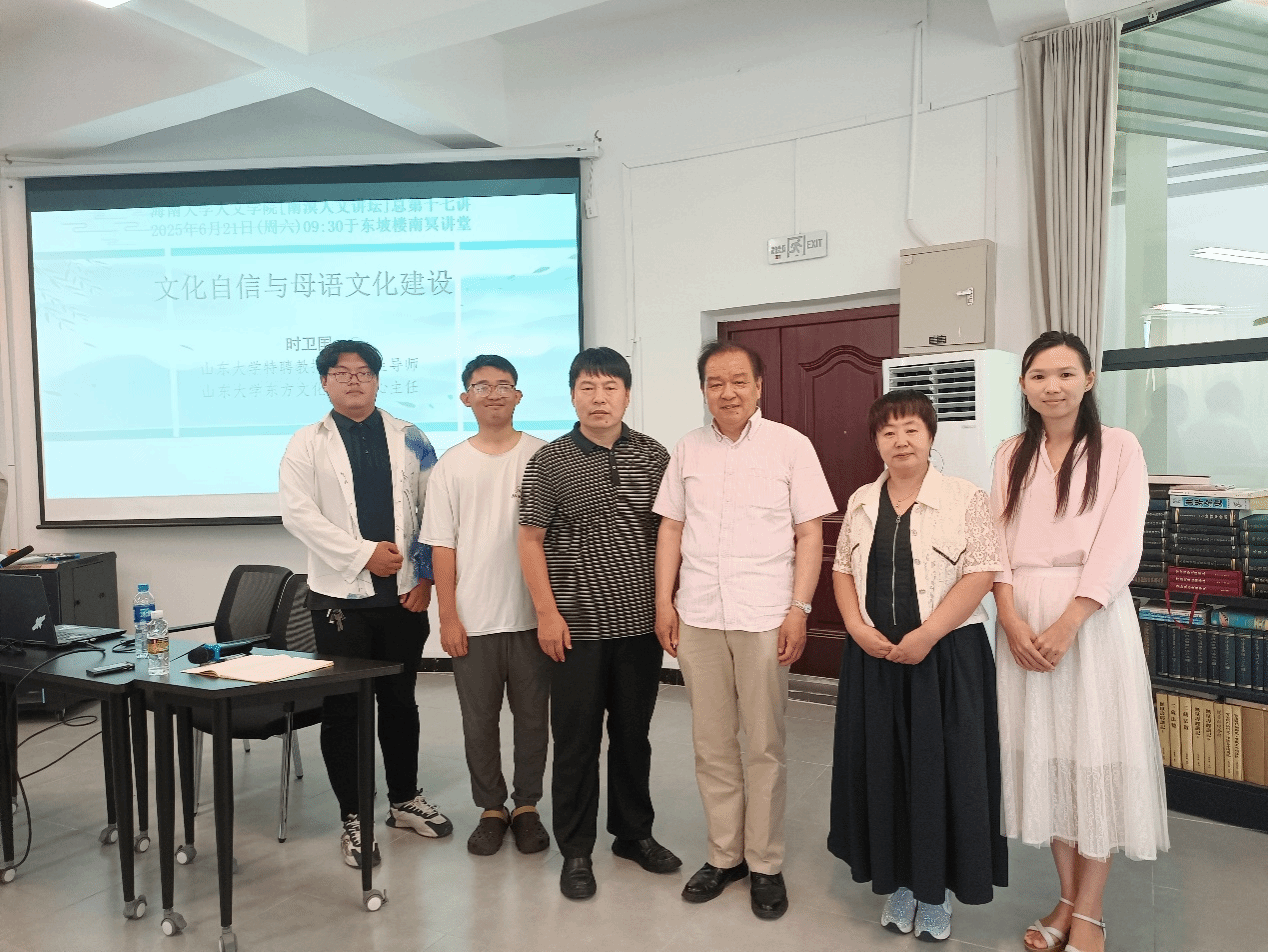 2025年6月21日上午,山东大学特聘教授时卫国受邀在南冥讲堂作了题为“文化自信与母语文化建设”的学术讲座。女同做爱 部分师生代表参加了此次活动。讲座由女同做爱 副院长陈红旗教授主持。