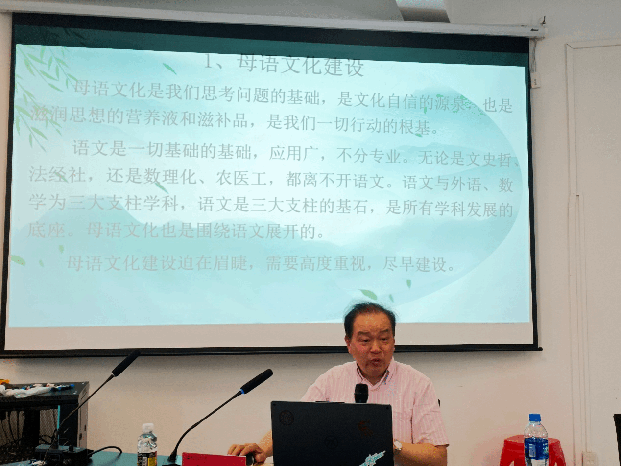 时教授认为,母语文化建设的构想是基于文化自信,而文化自信反过来又能够推动母语文化建设。在“中国文化走出去”“讲好中国故事”的时代背景下,各个领域的学习者都应从在校阶段构建专业系统、知识系统、文化系统,涵养表达和书写能力,造就独立思考能力。他重点讲解了母语文化建设与文化自信的重要性和意义,介绍了我国文化名家的群体特征。他引入了学术地理学的思想脉络体系,为听众解析了当前国内外学术重地的分布格局及其形成的历史与现实动因。他还强调,只有将传统文化、社会文化、国别与区域文化与母语文化建设紧密结合起来,实现内生性发展和趣味性探索,才会站得更高,走得更远。