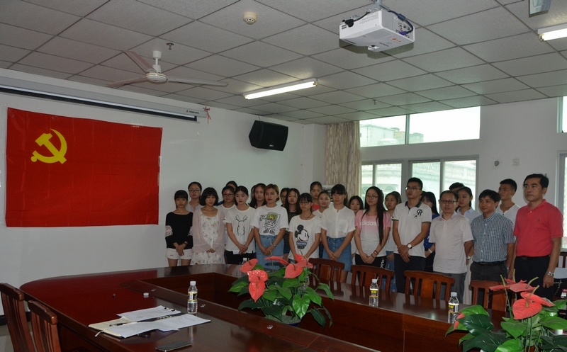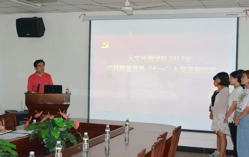 为庆祝中国共产党建党96周年,6月28日下午,人文传播学院党委在社科楼B719会议室举行了新党员入党宣誓仪式。学院党委书记华世佳、院党委委员高智、王春嵩、学院党务工作联系人李润东以及2017年全体新发展党员参加了宣誓仪式。仪式由高智主持。