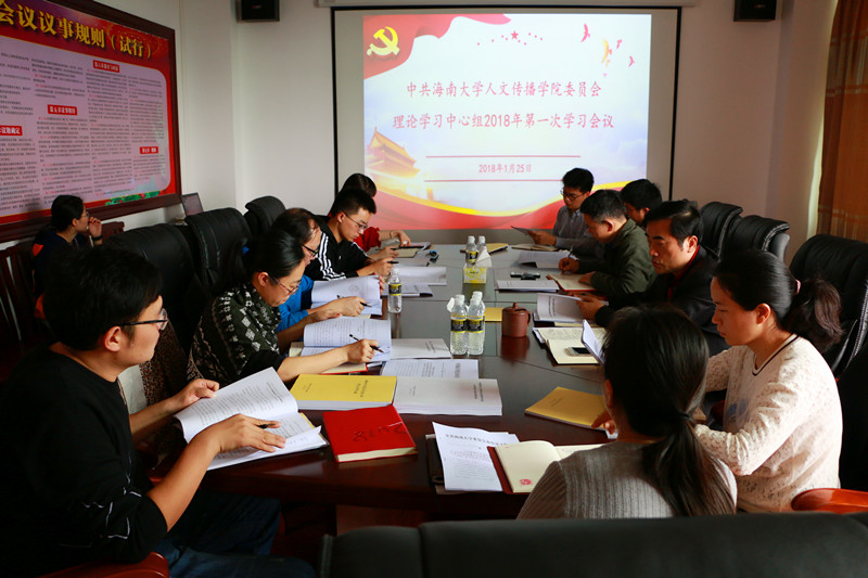 1月25日下午,人文传播学院党委理论学习中心组召开2018年第一次学习(扩大)会,会议由院党委书记华世佳主持,院长刘复生、院党委副书记孙晓媛、副院长石晓岩、张硕果等理论学习中心组成员以及学院各党支部书记参加会议。