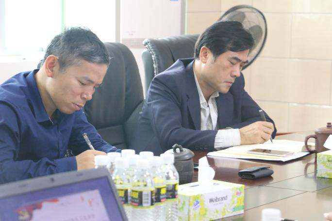 华世佳书记(右)、刘复生院长(左)认真记录与会师生的意见建议