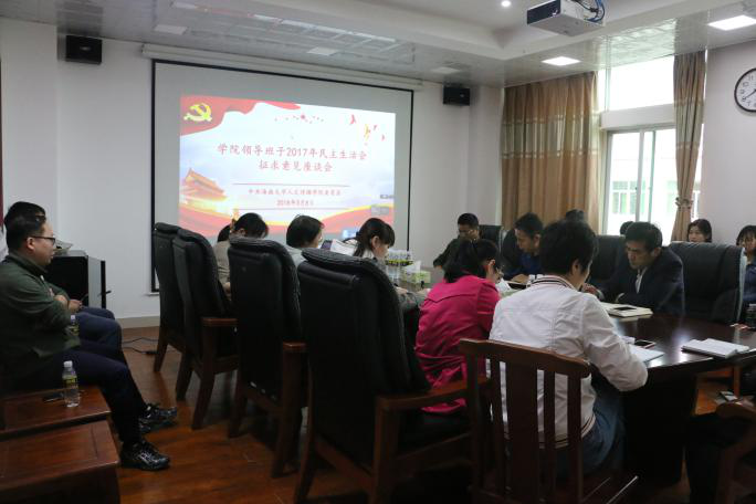 为确保学院领导班子民主生活会开出高质量,开出新气象,2018年3月8日下午,院党委书记华世佳主持召开学院领导班子民主生活会征求意见座谈会,学院领导班子成员、系主任、党支部书记、科室(实验室)负责人以及师生代表参加座谈会。 座谈会上,有的老师表示,希望制定科学的管理制度,使学院各项工作更上一个新台阶;有的老师提出,要进行顶层设计,建立学生实习实践规范化制度,为学生提供更多的与专业相结合的实习实践机会和平台,为学生走入社会打好坚实的基础;学生代表也就学习和生活等方面提出了自己的看法与见解。与会师生纷纷结合自身工作学习实际,立足学院发展,就人才培养、学科建设、师资队伍建设、学风建设、思政工作、党建工作、教职工民生等问题提出了富有针对性和建设性的意见和建议。 华世佳代表学院感谢与会师生对学院发展建设以及从严从实开好民主生活会提出的意见和建议,并表示,对于师生们提出的意见和建议,学院将进行认真梳理、深入剖析,进一步研究制定相应整改对策。希望大家一如既往关心支持学院的建设发展,积极为学院的科学发展建言献策。