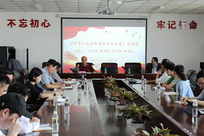 2018年3月27日下午,人文传播学院党委在海甸校区社科楼人文传播学院党员之家(B719会议室)举行《中华人民共和国宪法修正案》宣讲交流会。本次宣讲交流会邀请到法学院原院长王峻岩教授、学校特邀党建组织员程儒参、林廷玖、符志新等作为宣讲嘉宾,为女同做爱