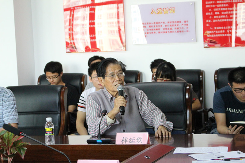 会议伊始,王峻岩教授向与会学生解读宪法修正案,王教授强调,要响应习近平主席的“宪法至上”理念,号召大家加强宪法的学习和宣传教育,弘扬宪法精神,与时俱进。王教授分别从“修改宪法的重大意义”、“如何修改宪法”和“修改了哪些内容”等三个方面入手,解读了宪法的重要性,并勉励与会师生自觉增强政治意识和宪法意识,成为中国特色社会主义事业的合格建设者和可靠接班人。同时,王教授还向与会学生普法解法,回顾历史,展望未来,强调了中国共产党的领导是中国特色社会主义的根本特征,侧重介绍了构建人类命运共同体对和平外交的重要影响,鼓励与会学生树立社会主义核心价值观。在王教授宣讲结束后,宣讲会进入了现场互动提问环节,与会学生与在场的老前辈们积极互动。其中一名同学针对王教授解读时所提到的天下太平,提出了“如何看待近期中美贸易战”的问题,得到了程儒参老师的激情解答,程老师由表及里为大家分析了这场纷争的本质,他认为我国针对该贸易战所作出的决策,是深入贯彻党的宗旨,符合人民利益的正确决策,在座学生们听后深受启发,受益匪浅。随后,学生们和与会嘉宾进行深入交流和讨论,程儒参、林廷玖和符志新老师对同学们的疑惑和想法提出了自己的看法,鼓励同学们努力提升自身政治意识和宪法意识,积极投身到中国特色社会主义现代化强国的建设当中去。