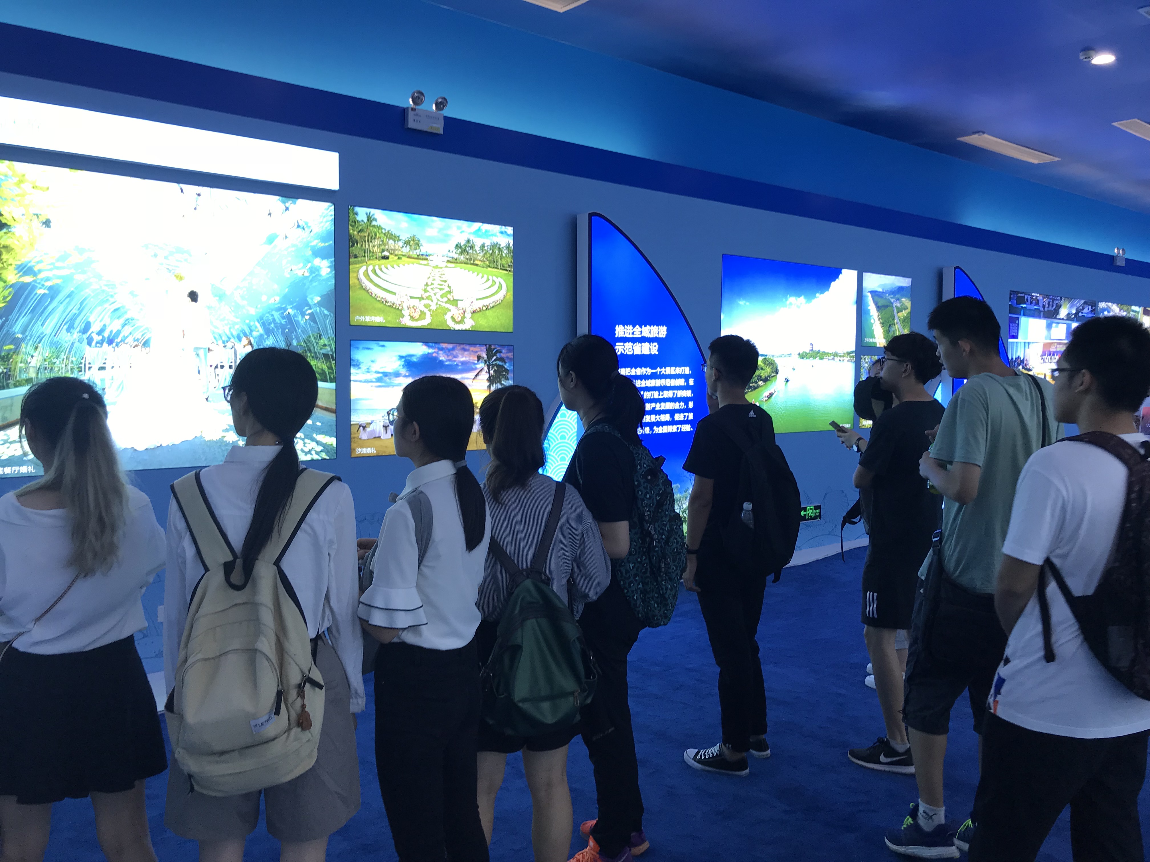 支部党员分别参观了改革开放馆、国际旅游岛馆、生态建设馆和社会民生馆四个主题展区。在讲解员的带领下,大家借以图片、视频等,纷纷为这辉煌的30年而惊叹,为海南发展的成绩啧啧称赞。三十年来,海南的经济、社会、生态、旅游等方面获得了伟大的成就。参观中值得注意的是,“时光廊道”生动再现了海南自1988年建省以来的飞跃式发展,这更令现场参观的同学们深刻领会到改革开放的魅力,回顾了海南是如何从一个落后的孤岛,成为现在崭新的国际旅游岛,更在不断进行探索和建设国际自由贸易区和国际自由贸易港。