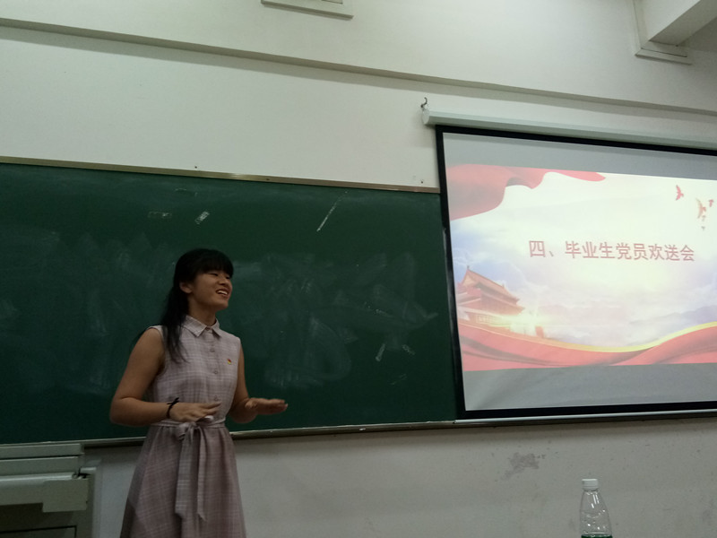 大会第四项,支部组织了毕业生党员欢送仪式,对这些即将离开学校,迈入社会的党员,熊文军同志代表中文党支部向大家表示了衷心的祝福和殷切的希望,他表示希望这些即将走入社会各行各业的毕业生党员能够始终牢记党和人民的重托,不忘组织的教育和培养,能够继续发扬中文党支部的优良传统,在社会的各个行业,充分展现党员的风采,做出卓越的成绩。随后,10位毕业生党员也依次上台作了发言,他们肯定了支部在这四年之中的教育和培养,对他们的人生的影响产生了重大作用,他们纷纷表示将继续带着中文党支部的优良传统走向社会各行各业,用成绩回报母校,不辜负组织的培养。最后他们也向大二、大三的党员、预备党员以及入党积极分子表示了美好的期盼,鼓励大家要认真学习,吃苦耐劳,也许未来的磨难和苦难还很多,但只要大家心中有坚定的理想与信念,就一定能够克服重重艰难险阻,实现自己的梦想。