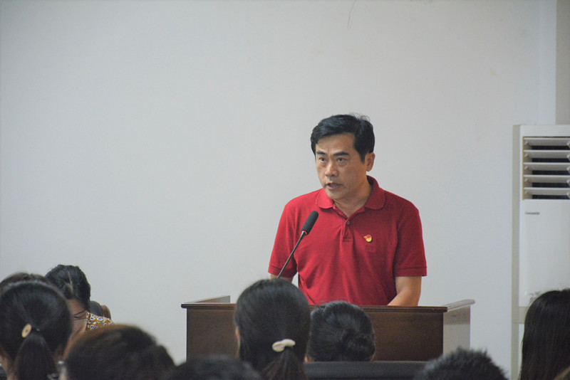 华世佳代表学院党委向新加入党组织的同志、向受到表彰的先进基层党组织、优秀党务工作者、优秀共产党员表示热烈的祝贺。同时对全体党员提出了五点要求和希望:一是把党的政治建设摆在首位,坚决维护习近平总书记的核心地位和党中央的权威,牢固增强“四个意识”、坚定“四个自信”、做到“两个维护”,在落实立德树人根本任务的过程中,把好思想政治关和意识形态阵地关。二是不断加强政治理论学习,保持思想上的与时俱进,要把习近平新时代中国特色社会主义思想和党的十九大精神作为根本指导思想和强大理论武器,切实用以武装头脑、指导实践、推动工作。三是不忘初心,坚定理想信念,师生党员要勇于担当、甘于奉献,时时刻刻不忘自己的党员身份,自觉成为社会主义核心价值观的先行者、实践者、推动者。四是各级党组织和全体党员要持之以恒正风肃纪,以党章和党内法规为依据,深入开展党风廉政建设和反腐败工作,坚决贯彻师德师风“十严禁”,实行思想政治和师德师风一票否决。五是牢记党的宗旨,自觉践行共产党员“四讲四有”合格标准,立足岗位做贡献,在工作、学习和生活中充分发挥党员发挥模范带头作用,以实际行动为学院建设与发展贡献智慧与力量,推动学院各项事业全面发展。