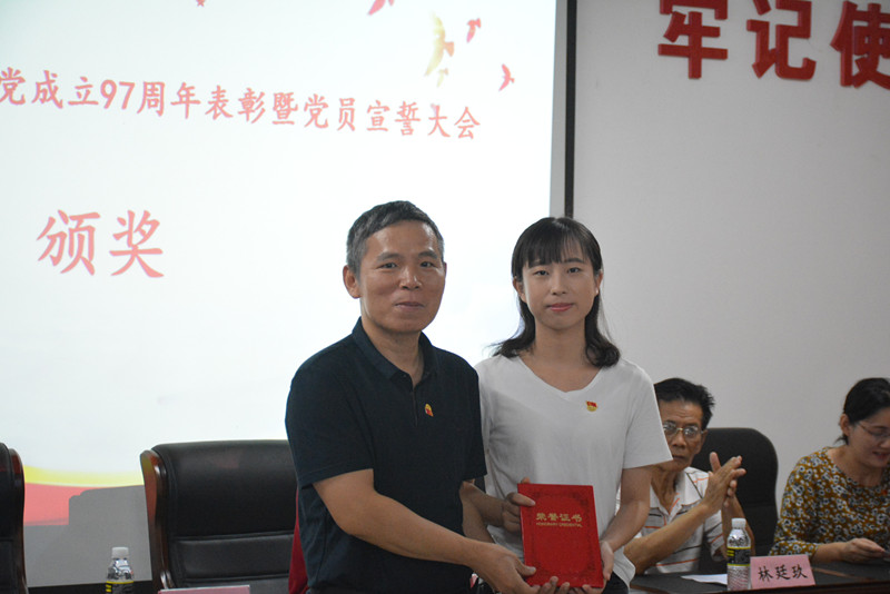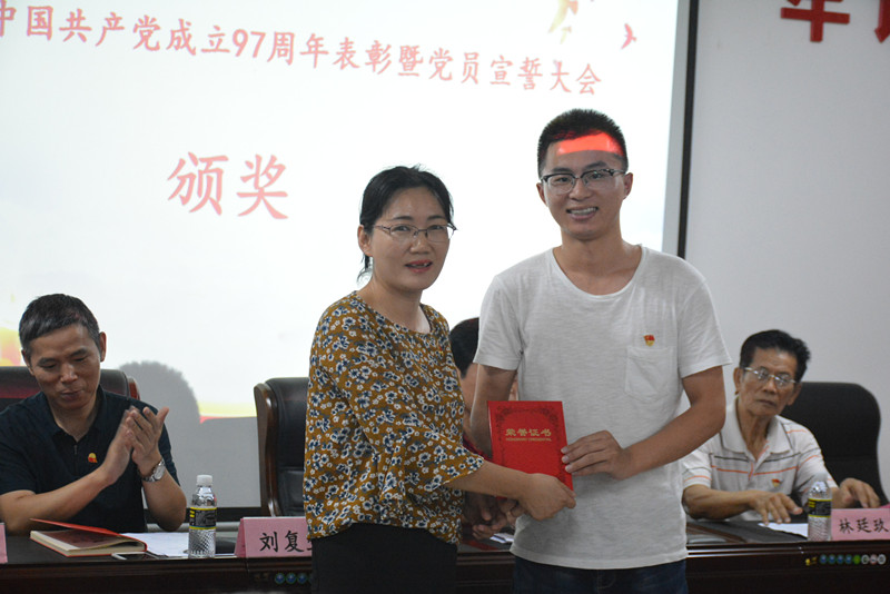 刘复生、林廷玖和李彩霞分别为先进集体及优秀个人颁发了获奖证书。预备党员代表张之越同学、女同做爱