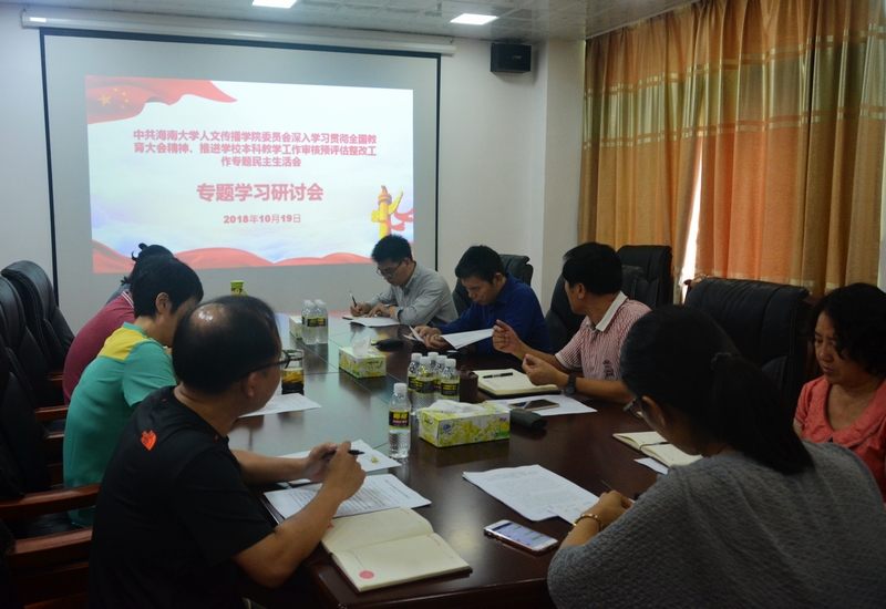 人文传播学院委员会深入学习贯彻全国教育大会精神、推进学校本科教学工作审核预评估整改工作专题民主生活会”专题学习研讨会。会议由院党委书记华世佳主持,院长刘复生、院党委副书记孙晓媛、副院长张硕果、李彩霞,党委委员王春嵩等理论学习中心组成员参加会议。
