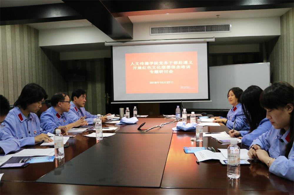 为了使学习更加有成效,真正的入脑入心,在遵义学习培训期间还专门安排了专题学习研讨。10月27日晚7:30,“人文传播学院赴遵义开展红色文化理想信念培训”专题研讨会在遵义举行,党委书记华世佳主持会议。会上,华世佳书记传达了学校党委对于本次培训的高度重视及要求,并带领大家结合本次遵义学习培训的体会及当前学校迎接本科教学工作审核评估工作、教育教学改革发展状况再次深入学习习近平总书记4·13重要讲话精神、全国教育大会精神、教育部新时代全国高等学校本科教育工作会议精神、在建设海南自由贸易试验区和中国特色自由贸易港实践中勇当先锋、做好表率等文件精神。