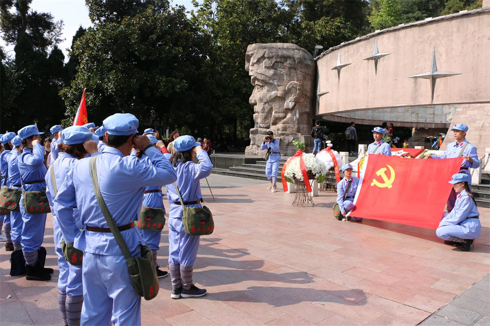 在烈士陵园面对党旗庄严宣誓,重温入党誓词