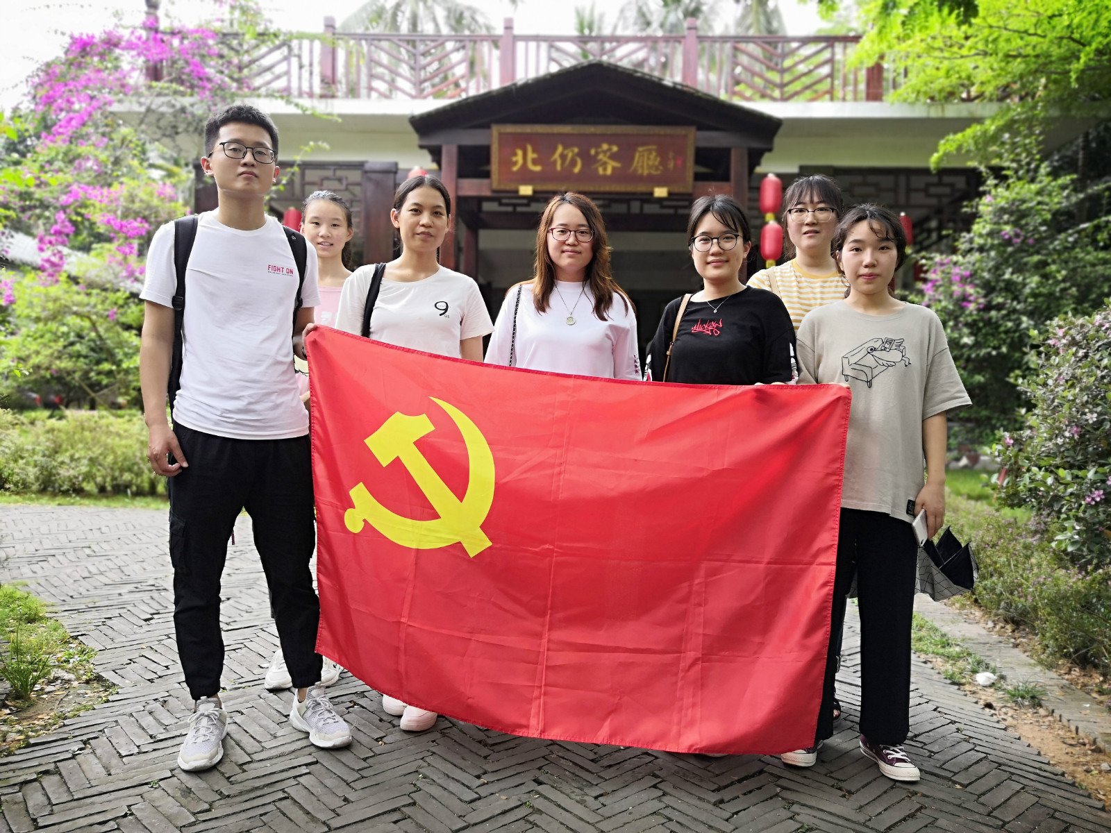 为深入学习贯彻党的十九大精神,庆祝新中国成立七十周年,弘扬革命先烈艰苦奋斗的作风,3月30日,在传统节日清明节即将到来之际,人文传播学院汉语国际教育学生党支部组织赴琼海北仍村、红色娘子军纪念园等地,开展红色革命教育主题党日活动。汉语国际教育学生党支部书记李润东老师带队参加本次活动,支部学生党员代表参加活动。