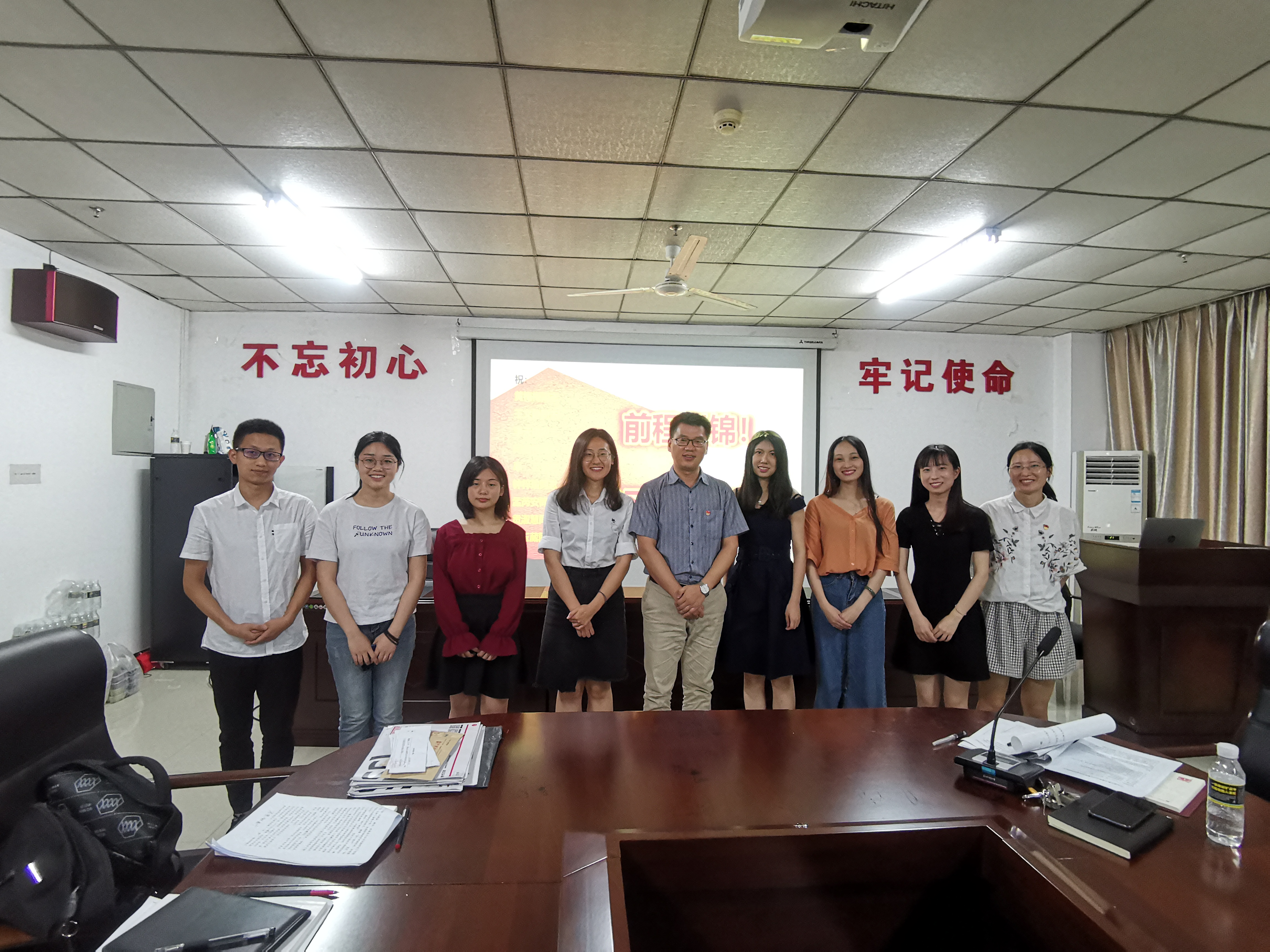 在大会的第四项,毕业生党员的欢送仪式上。支部书记熊文军为毕业党员送上“最后一课”和“临别赠言”,他强调了组织关系转接的重要性以及转接工作程序的各项要求,同时希望她们在新的党支部,也能继续发挥“光和热”,做到“不忘初心、牢记使命”。黄梅梅、王文静、刘玉葳、李天琪、闫耀恒、辜芸、钟梓瑜、孟芮安、贡淑慧九名同志与熊文军老师进行了合影留念。