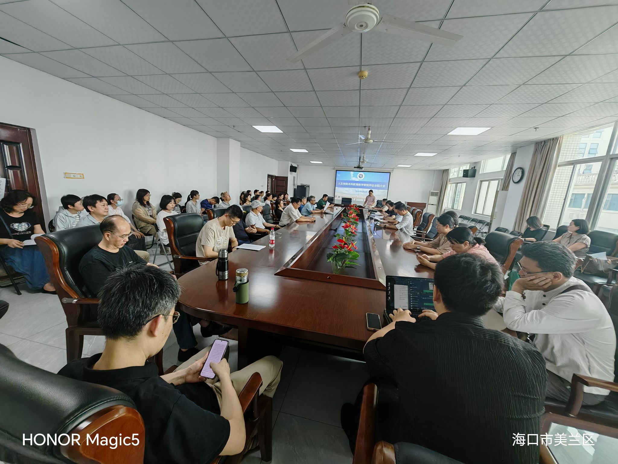 在社科楼B719会议室举行全体教职工大会,院长谭新红,党委书记杨元广,副院长李彩霞、贾冬阳、章颜和全体教职工参加会议,会议由杨元广主持。