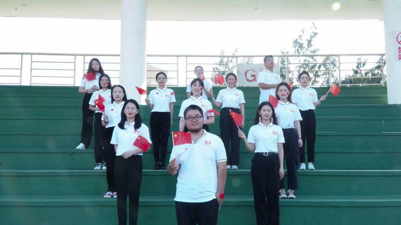 为迎接中华人民共和国成立70周年,引领支部党员深入学习贯彻习近平新时代中国特色社会主义思想和党的十九大精神,增强自身的国家荣誉感和历史使命感,2019年9月12日下午,人文传播学院戏剧影视文学学生党支部组织“唱红歌·与国旗同框”主题党日活动,通过歌唱祖国的形式深切表达了青年党员们对祖国的热爱与自豪。
