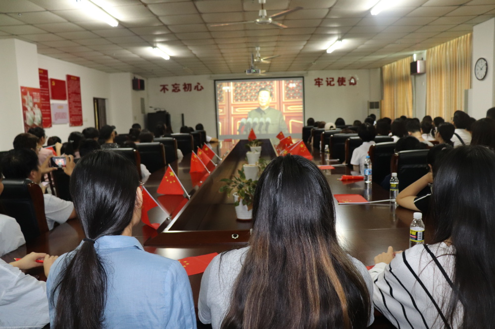 人文传播学院党委组织党员代表、团员代表87人在社科楼B719共同观看。
